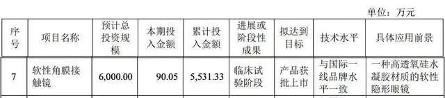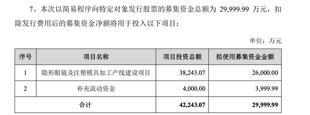 正是这块业务窜得如此之快,爱博在12月5日还发布公告会以简易程序向特定对象募资3亿用来建设隐形眼镜的产线。