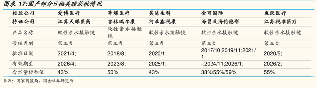 由于隐形眼镜需要放入人体,需要三类医疗器械证,看似是消费品,实则是医疗产品,所以门槛不低,这也是为什么国内厂商市场份额较低且大多集中在要求较低的半年抛、年抛领域。