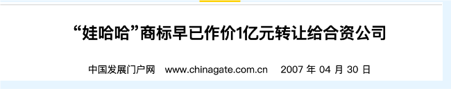 [摘要] 娃哈哈商标从集团公司转让给食品公司的消息引起了轩然大波,再次引起了谁的娃哈哈,谁的 387 个娃哈哈商标的争论。