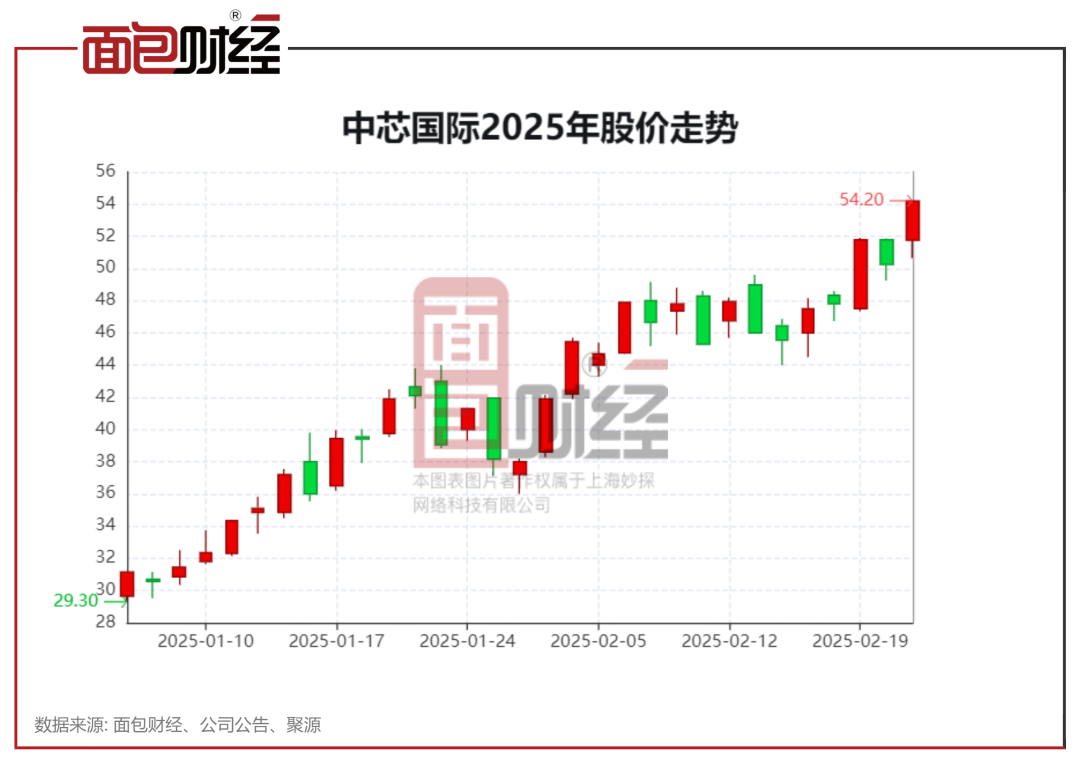 2025年以来,中芯国际上涨70.44%,市值约5489.38亿港元。