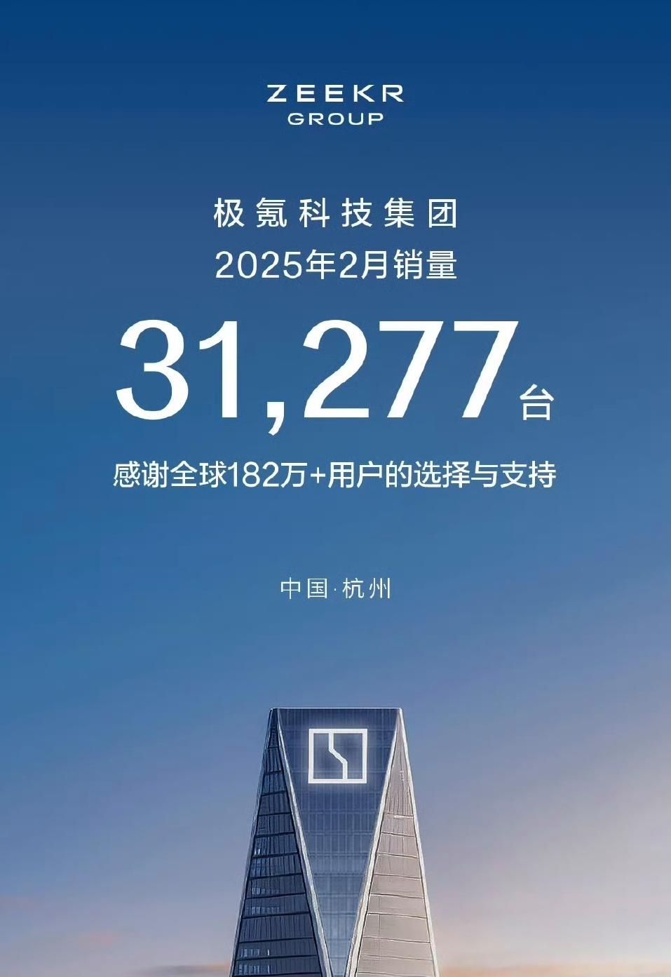 2025年2月,新成立的极氪科技集团公布了合并后的首个月度成绩单,以31,277台的交付量首次亮相便领跑中国高端豪华新能源市场。