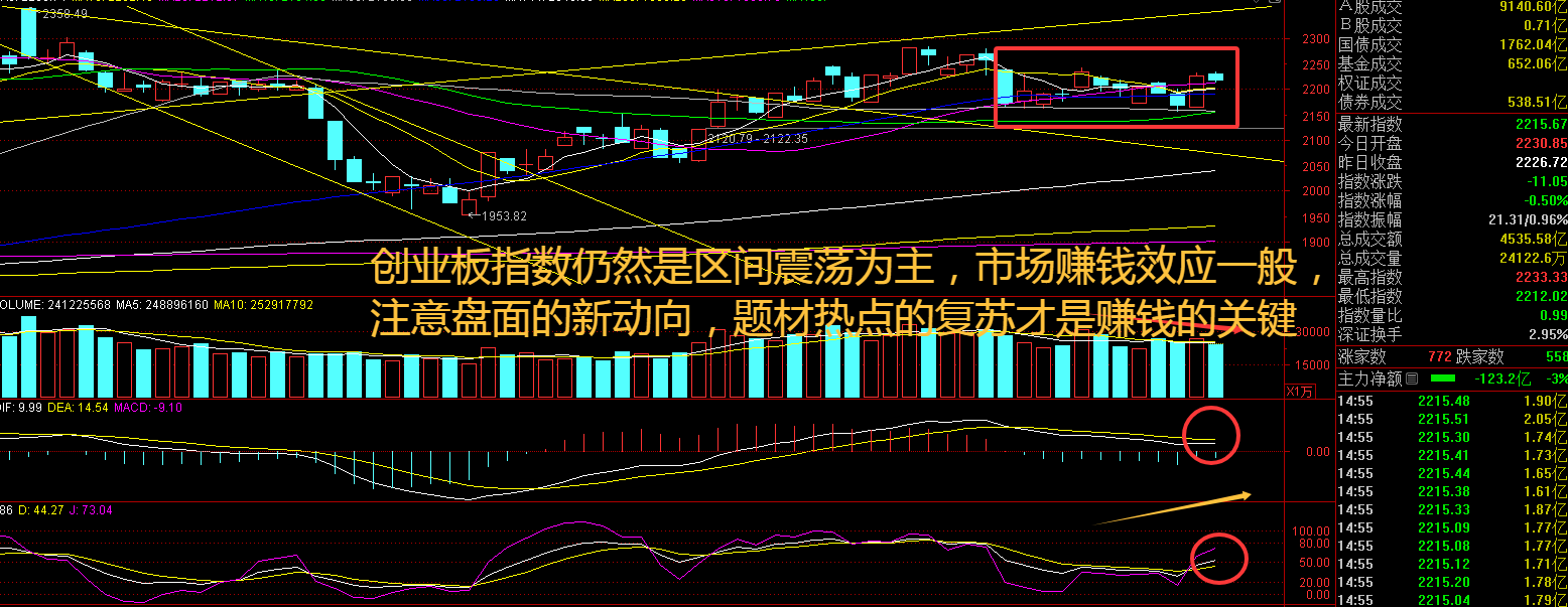 创业板指数周一高开后始终是水下震荡为主,没有明显的反弹走势,机器人水下拉起有资金关注,AI板块继续分化,市场仍然还是拉升个股带动板块反弹行情为主。加快多层次债券市场发展等,进一步稳住股市的政策工具箱已经打开,诸多重点举措将于关键处落子。方向明、路径清,改革层层深入、步步突破,加之经济持续回升向好,有理由相信,股市内在稳定性将不断增强,为稳住全社会发展信心护航,为汇聚创新创业合力助力。接下来注意创业板指数能否在2200点之上稳住。