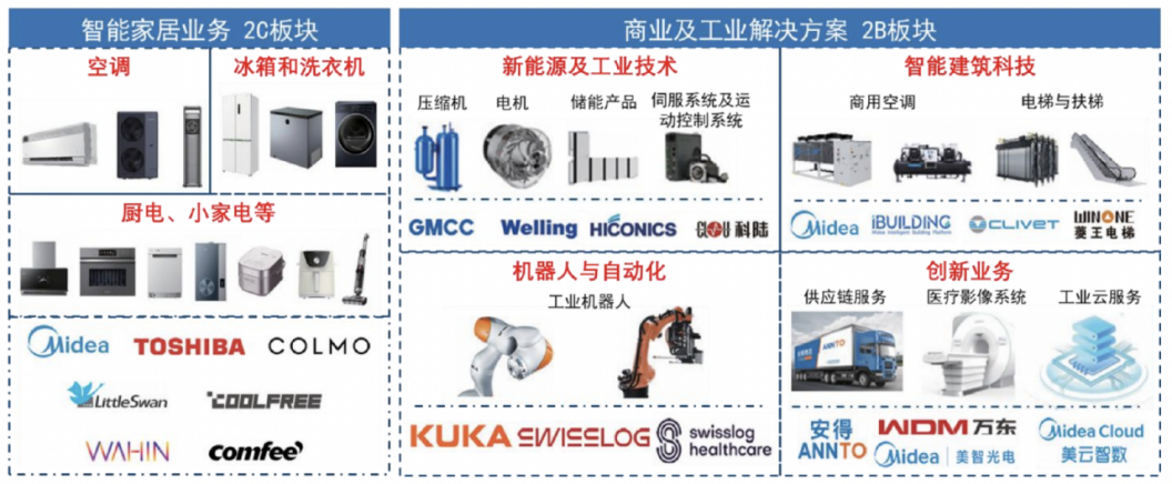 除了我们熟知的C端家电业务外,美的还覆盖了新能源&工业技术、智能建筑科技、机器人与自动化、其他创新业务的B端商业及工业解决方案等领域,海外收入在整体收入中的比重达到了42%左右。