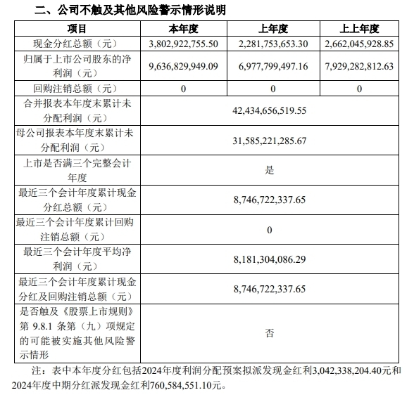 发布财报的同时,广发证券披露了2024年度利润分配方案公告,拟向全体股东每10股派发现金红利4元(含税),合计分配现金红利30.42亿元,现金分红比例达31.57%。