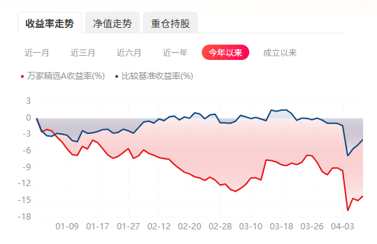 2025年一季度,万家精选A净值下跌10.3%,跑输业绩基准超过9个百分点。
