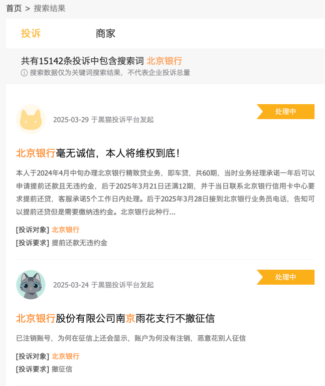 另据黑猫投诉平台显示,北京银行还因不撤征信、虚假宣传、暴力催收等屡屡被投诉,这些都反映出北京银行在零售信贷业务的风险控制和合规管理方面存在漏洞,不仅影响了客户体验,还可能引发监管部门的进一步调查和处罚,对银行的形象和业务发展造成不利影响。