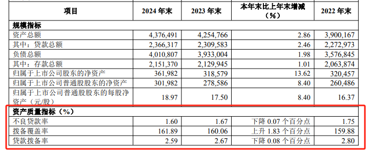 数据显示,截至2024年末,华夏银行不良贷款余额379.14亿元,较上年末减少5.91亿元,降幅为1.53%;不良贷款率1.60%,较上年末下降0.07个百分点;拨备覆盖率161.89%,较上年末上升1.83个百分点。