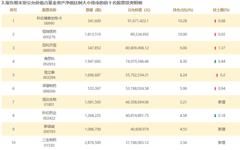 重仓股科伦博泰生物、百利天恒年内股价涨幅超四成