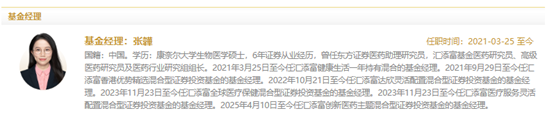 汇添富健康生活一年持有基金经理为张韡。公开资料显示,张韡曾任东方证券医药助理研究员,汇添富基金医药研究员、高级医药研究员及医药行业研究组组长。