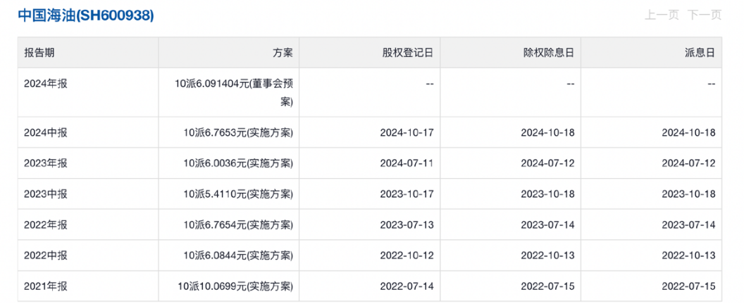 比如中国海油,人家每年都大手笔分红,甚至一年还分两次,2024全年建议向全体股东派发2024年末期股息每股0.61元,连同已派发的中期股息每股0.68元,2024年度末期股息及中期股息合计每股1.29元,股息率高达5%以上。