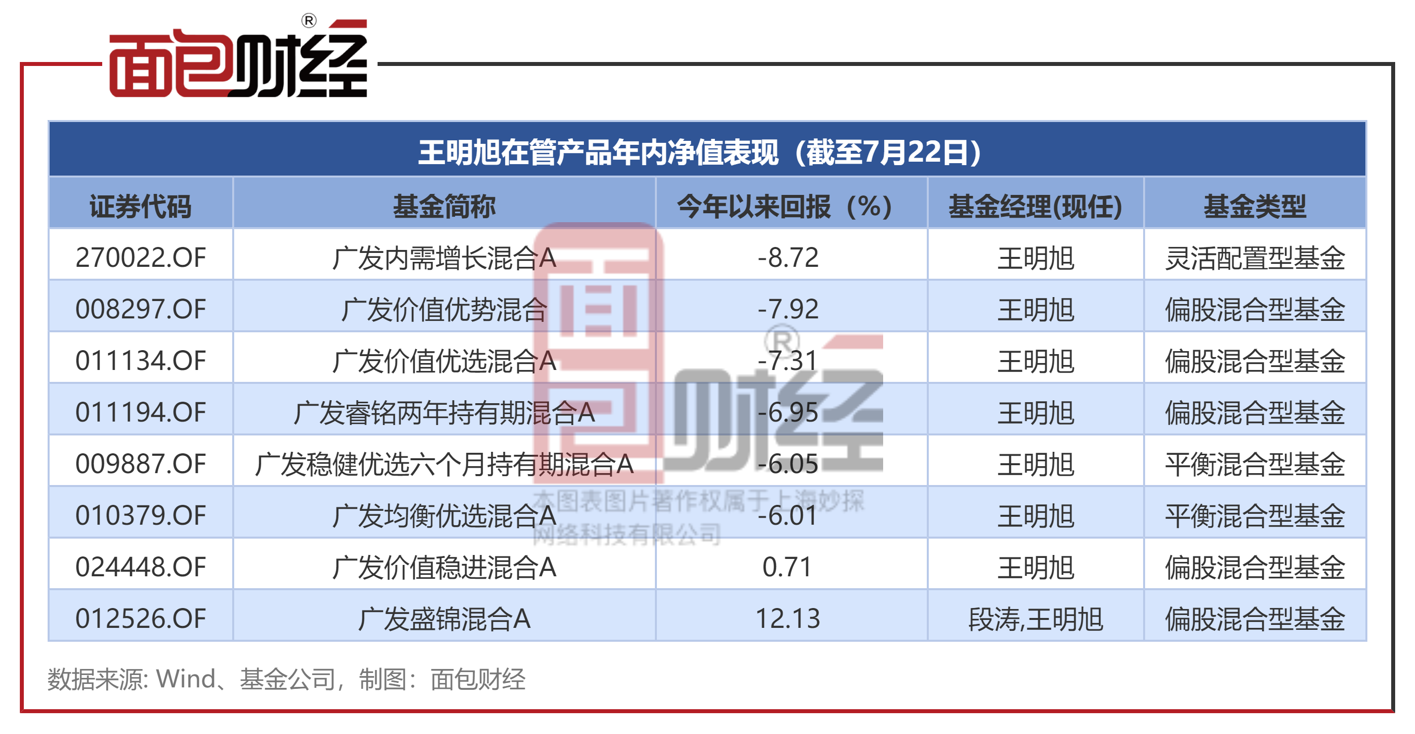广发基金王明旭:多只在管产品业绩垫底,年内跌幅超6%