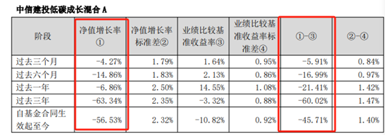 近期披露的二季报显示,中信建投低碳成长A今年上半年净值逆势下跌14.86%,跑输业绩比较基准16.99个百分点。过去一年、过去三年,该基金分别跑输业绩比较基准21.41个百分点、60.02个百分点。