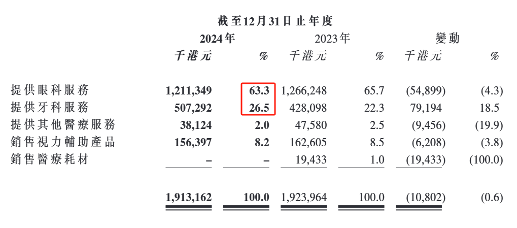 根据2024年财报披露,香港业务方面,公司眼科及相关服务网络主要包括五间日间手术中心、八间卫星诊所及八间眼科视光中心。自2021年起,公司开始在香港提供牙科、肿瘤科及其他医疗服务业务,当中包括截至2024年12月31日的六间牙科诊所、两间全科诊所及一间肿瘤中心。