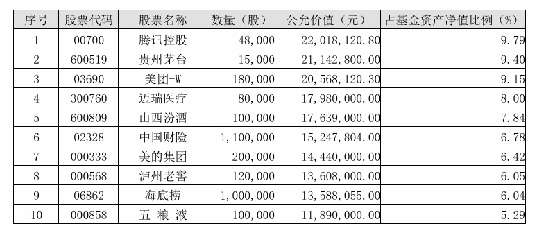 数据显示,基金一、二季度重仓股股票变化不大。二季度末,公司重仓腾讯控股、贵州茅台、美团等股票,其中美团、山西汾酒、泸州老窖、海底捞在二季度跌幅超过12%。
