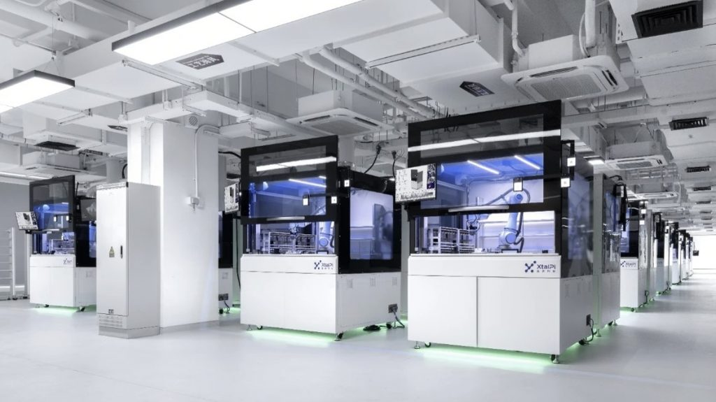 除此之外,晶泰已实现了自动化化学机器人的规模化生产,部署投入了数百台自主研发机器人,打造出了全球商业运营规模最大的人工智能化学实验工站集群。