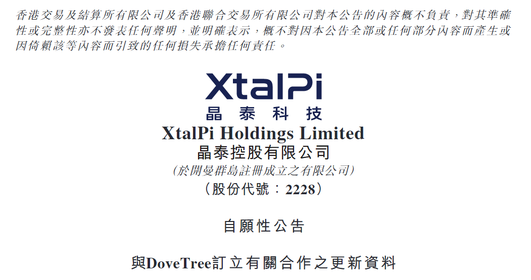 8月5日,来自深圳的港股上市企业晶泰科技(股份简称:晶泰控股)宣布,公司已与DoveTree签订最终合作协议并收到对方为合作支付的5100万美元首付款。