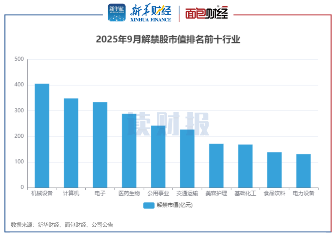 图3:2025年9月解禁股市值排名前十行业