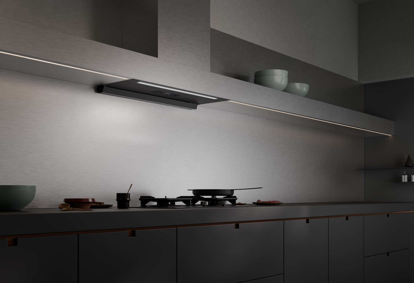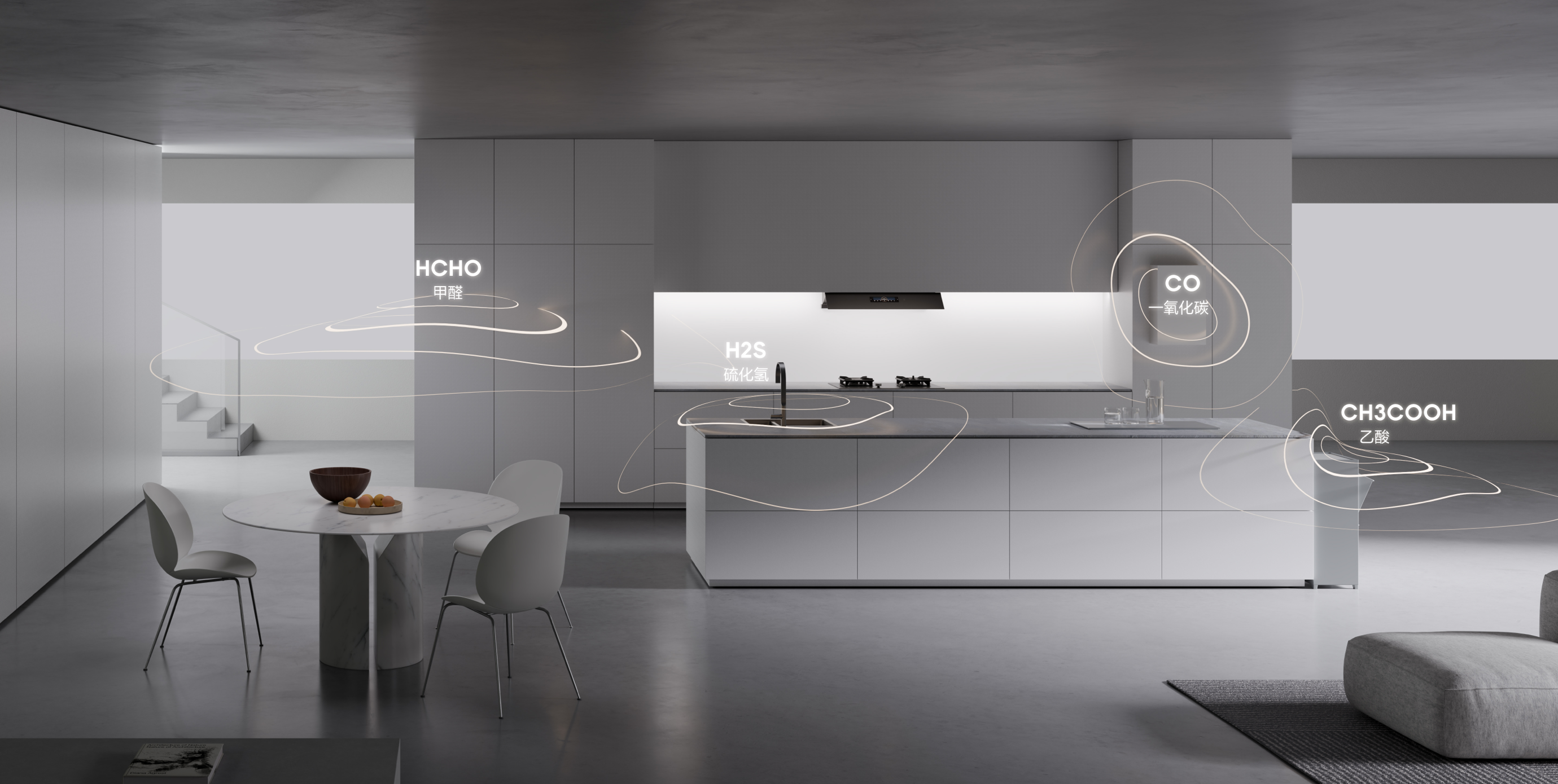 从此,厨房空间紧张,烟机机体突兀等等,曾经困扰无数消费者的油烟机无处安放,或者无论怎么安都碍事,都不好看的空间、审美问题将不复存在。