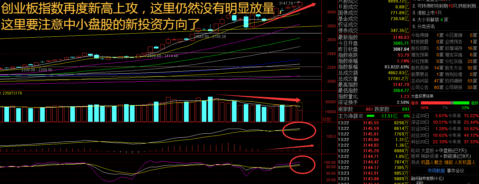 创业板指数周三盘中出现V型反转的走势,快速拉升后再度走高,出现了明显的主力护盘效应,金融股可谓是功不可没。央行9月16日以固定利率、数量招标方式开展2870亿元逆回购操作。因当日有2470亿元7天期逆回购到期,实现净投放400亿元。后续央行将继续把握好政策实施的力度和节奏,综合运用公开市场操作等多种货币政策工具,保持流动性处于充裕水平。接下来注意创业板指数能否在3150点之上稳住。