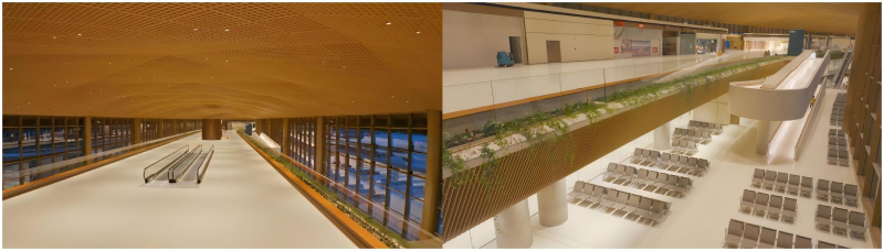 面对高标准的灯光设计蓝图,佛山照明以专业与匠心破局。团队深入现场精密测量评估,制作高精度照度模拟方案,确保设计精准落地。整体照明设计以“温暖与欢迎”为理念,依据不同功能区规划照度及防眩要求。以候机室为例,采用3000K暖光、200lx照度,通过科学配置灯具和安装位置,巧妙利用光的亮度与色温引导人流,营造温馨舒适的氛围,提升用户乘机体验。