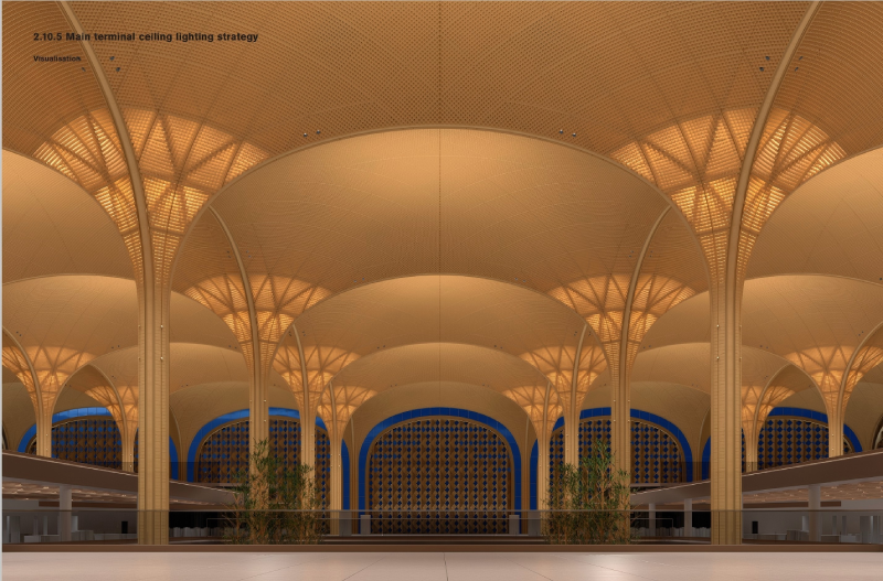 德崇国际机场是柬埔寨面向世界的新国门,其设计既要融入高棉文化、佛教元素等本土特色,又要彰显现代科技与国际风范。福斯特建筑事务所以严苛的标准与创新理念,将光定义为这座航空枢纽的核心设计语言。这一前瞻性构想不仅铸就了机场的美学基底,也为灯光实现带来了高难度的技术挑战。