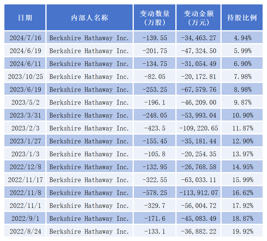 2024年7月,港交所第16次披露伯克希尔对比亚迪的减持动作。此次减持过后,伯克希尔持有的比亚迪股份比例已降至4.94%。彼时就有分析人士称,巴菲特或有清仓打算。