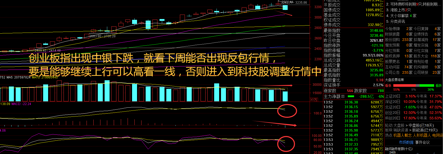 创业板指数周五出现跌逾3%的行情,一根中阴线出现有一定的杀伤力,就看下周能否再度反包修复,牛哥还是那句话:“创业板本轮行情就是一路向上,或者一路向下的走势!”从企业盈利和估值的角度看,当前市场已经不存在显著低估的板块,后续行情将是较为纯粹的流动性和赚钱效应的映射,今年来A股的行情是较为典型资金驱动行情,与全球主要股市牛市的性质较为一致。接下来注意创业板指数能否在3200点之上稳住。