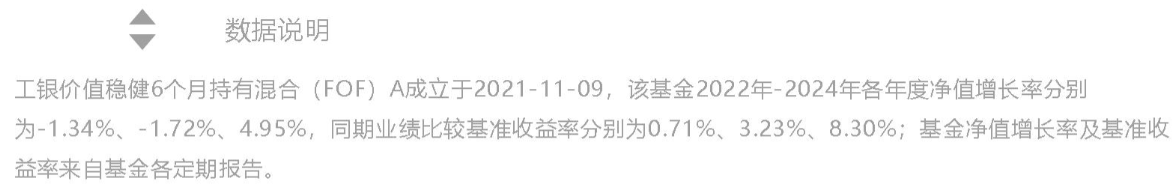 比如工银价值稳健6个月持有混合(FOF)(A类013300,C类013301),作为中风险“固收+”FOF产品,将30%以内的仓位配置于风险资产,主打全球大类资产配置策略,业绩表现相当能打。