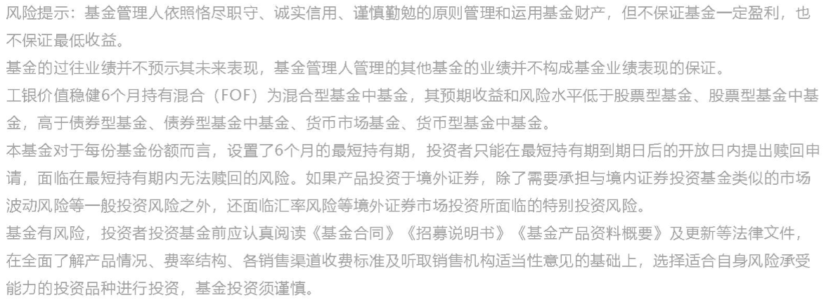 这种动态调整的固收策略,也是工银价值稳健6个月持有混合(FOF)的核心竞争力之一,它可以帮助组合进一步控制风险,增强收益。