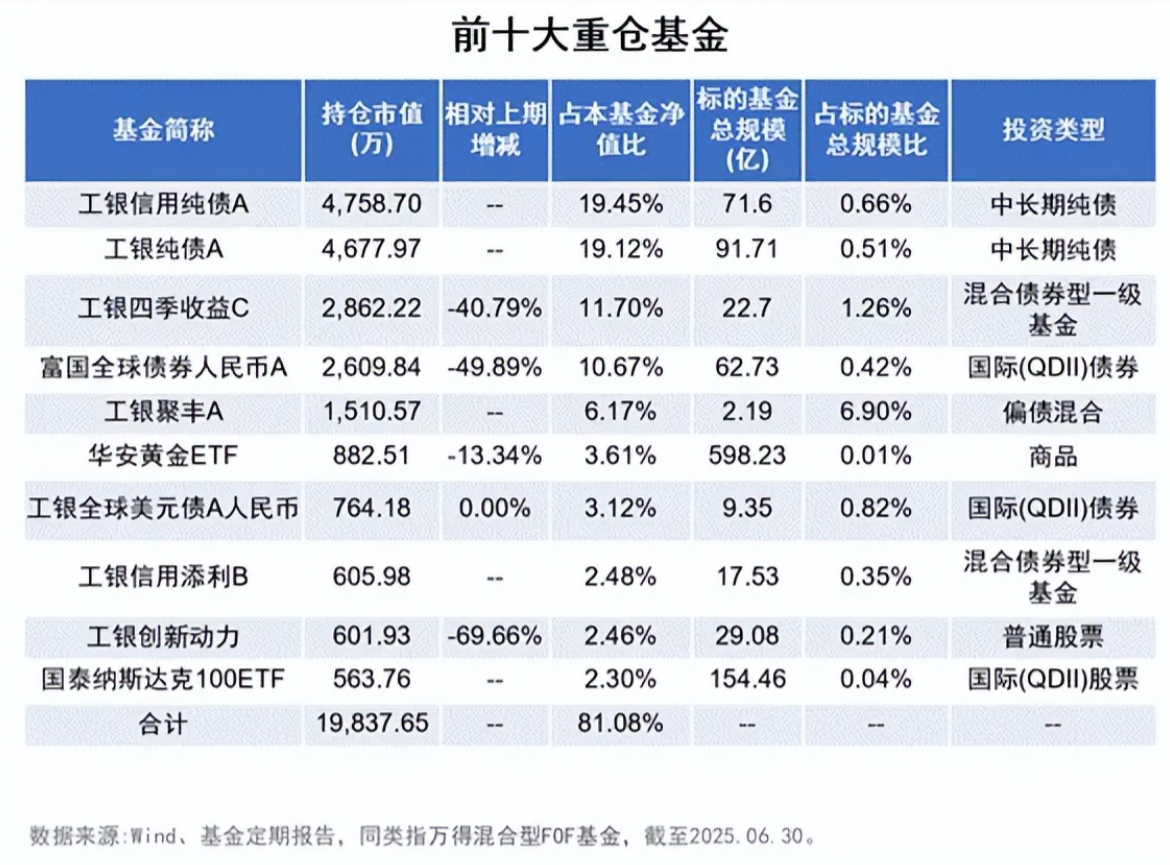 今年一季度,债券利率先上后下,随着债券收益率接近历史低位,性价比进一步下降,工银价值稳健6个月持有混合(FOF)又陆续兑现部分债基收益,增加了信用债和含权债基的配置。(资料来源:2025年基金一季报与基金中报)