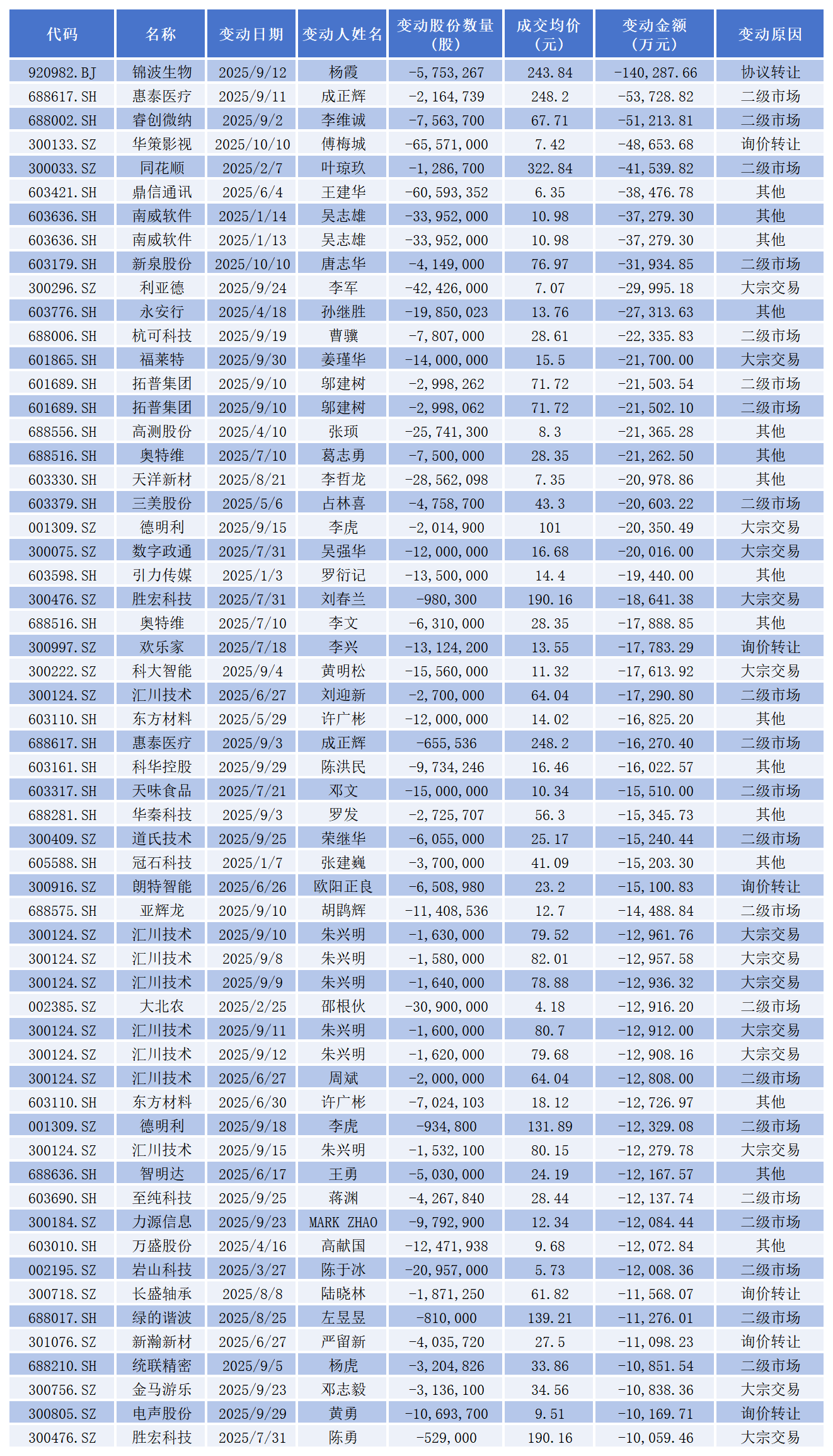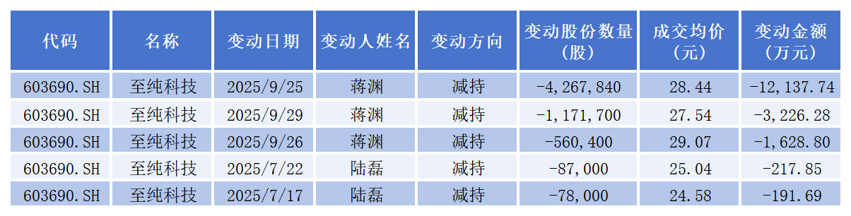 本次减持并非孤立事件。9月29日,公司披露的减持公告显示,董事余晓亮计划减持不超过391.81万股,按当日21.05元股价测算,套现规模将达8259.26万元。同期,董事会秘书张济亮、财务总监伍晓君分别拟减持2.25万股、2.5万股,三人合计计划减持比例达1.63%。