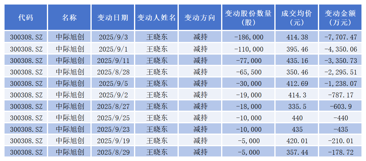9月17日,中际旭创一份减持公告在A股市场投下震撼弹。董事长刘圣已通过一致行动人益兴福完成了一场教科书级别的"精准收割"——以300元均价套现超10亿元,持股比例从9.417%精确降至8.9999%,巧妙避开了监管红线。