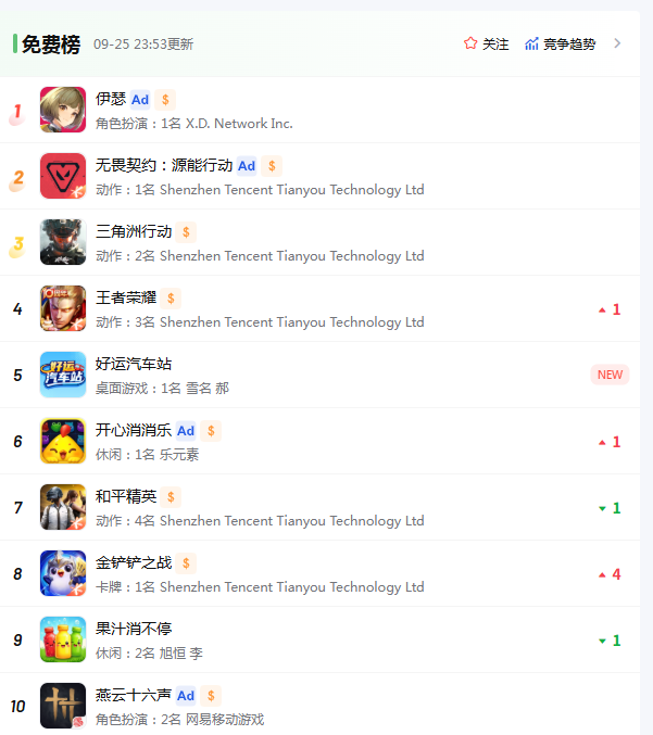 从全球其他市场表现来看,9月25日上线当天,《伊瑟》也位于中国港澳台、日本等市场iOS游戏免费榜前10。