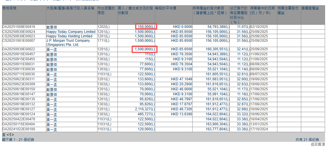 近期,心动公司董事会主席黄一孟、执行董事戴云杰分别在9月25日、10月2日减持150万股、15万股。