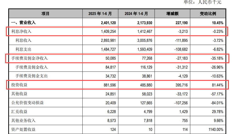 传统业务方面,随着净息差的持续收窄,2025年上半年江阴银行利息净收入为14.09亿元,较2024年同期减少约0.03亿元,微降0.23%。