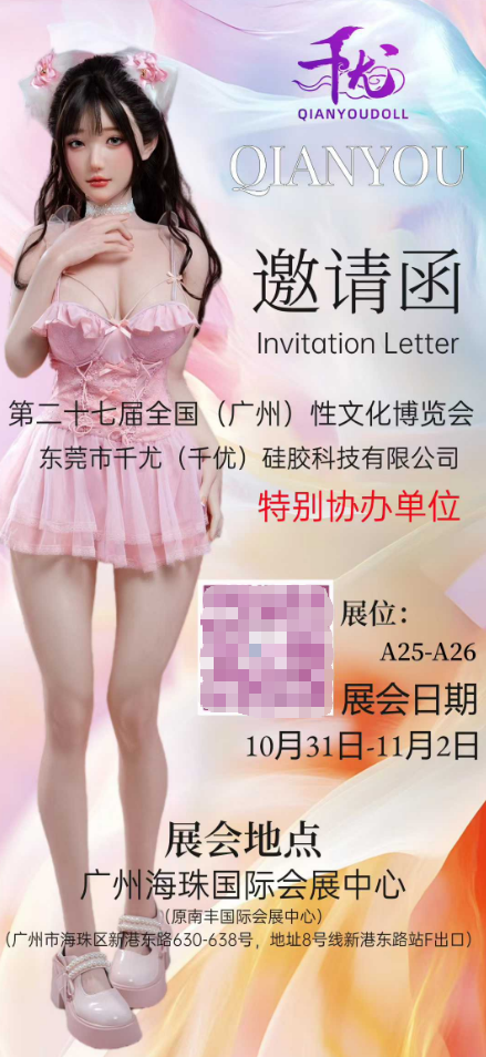 十年的积累与探索,终将在聚光灯下迎来绽放。作为品牌发展的重要里程碑,千尤娃娃将作为特别协办方,隆重参加于2025年10月31日至11月2日举办的第二十七届(广州)性文化博览会。