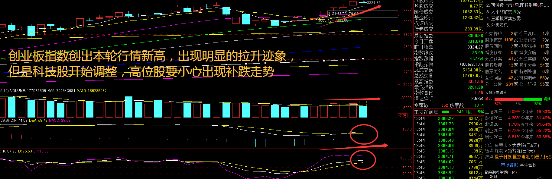 创业板指数周四创出本轮反弹的新高,随后出现明显的回调走势,在5日线附近寻求支撑。A股上市公司2025年三季报披露进入冲刺阶段。Wind数据显示,已有超过3000家A股公司完成三季报披露,其中超1200家公司前三季度归母净利润同比增长,180余家公司实现同比扭亏,上市公司整体业绩展现出较强韧性。接下来注意创业板指数能否在3300点之上稳住。