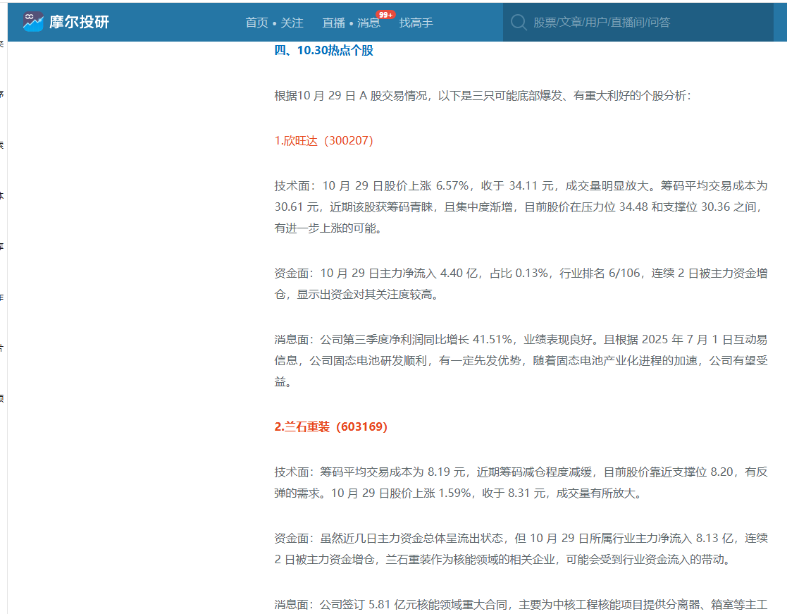 本文结合技术形态、资金流向及政策动态复盘行情,依托 “资金轮动 + 产业景气” 逻辑预测 10 月 31 日热点,为投资者提供参考。