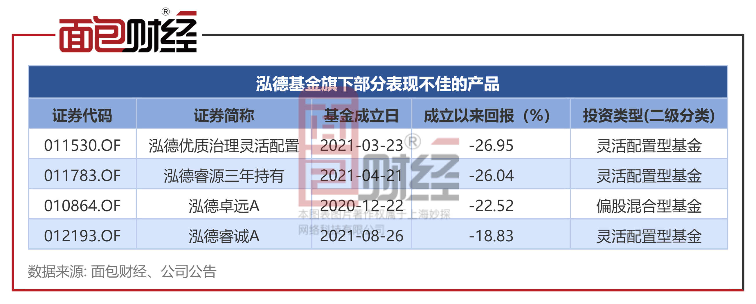 根据不完全统计,除了泓德优质治理灵活配置,泓德基金旗下还有多只产品成立以来净值下跌超过10%,包括泓德睿源三年持有、泓德卓远A等。