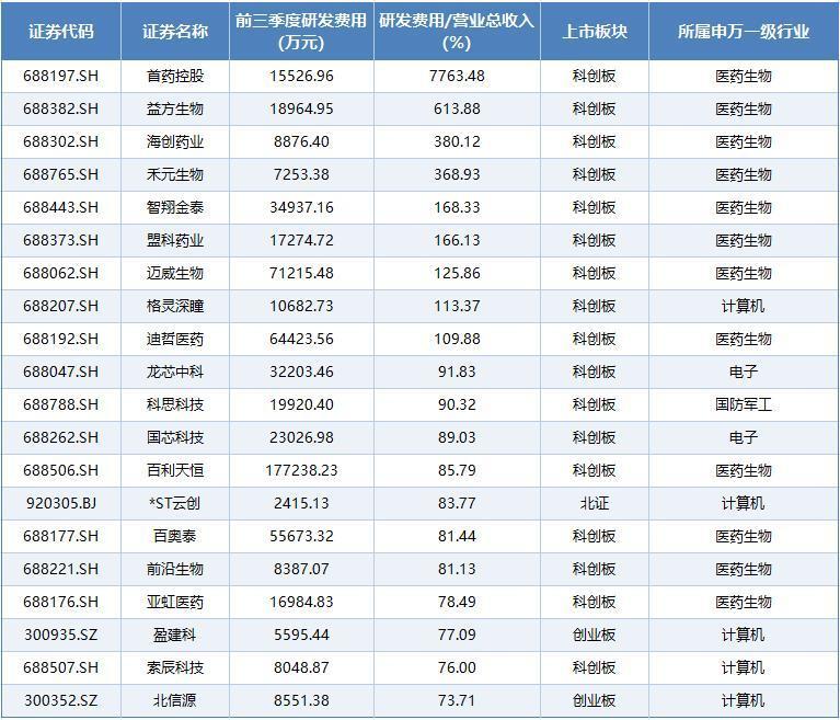 今年前三季度研发投入超1.16万亿!168家企业超十亿,科创板强
