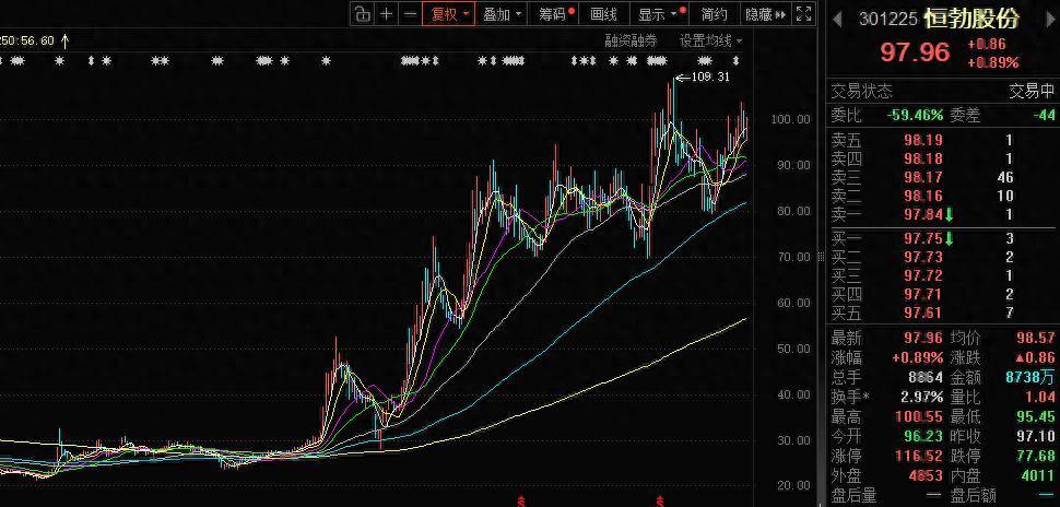 数据显示,3月6日,恒勃股份以每股30.96元收盘,随后股价开始震荡上升,11月4日收盘报97.10元/股,期间涨幅达216.31%。