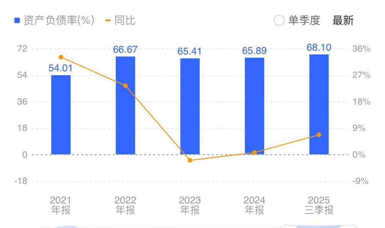 这也导致方正电机的现金流在多个财年为负,资产负债率节节攀升。2021年至2025年前三季度,公司资产负债率分别高达54.01%、66.67%、65.41%、65.89%、68.10%。