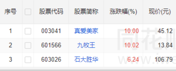 再看一下,上一交易日3连板的个股,真爱美家,九牧王都是T字板,3进4的成功率还是比较高的。