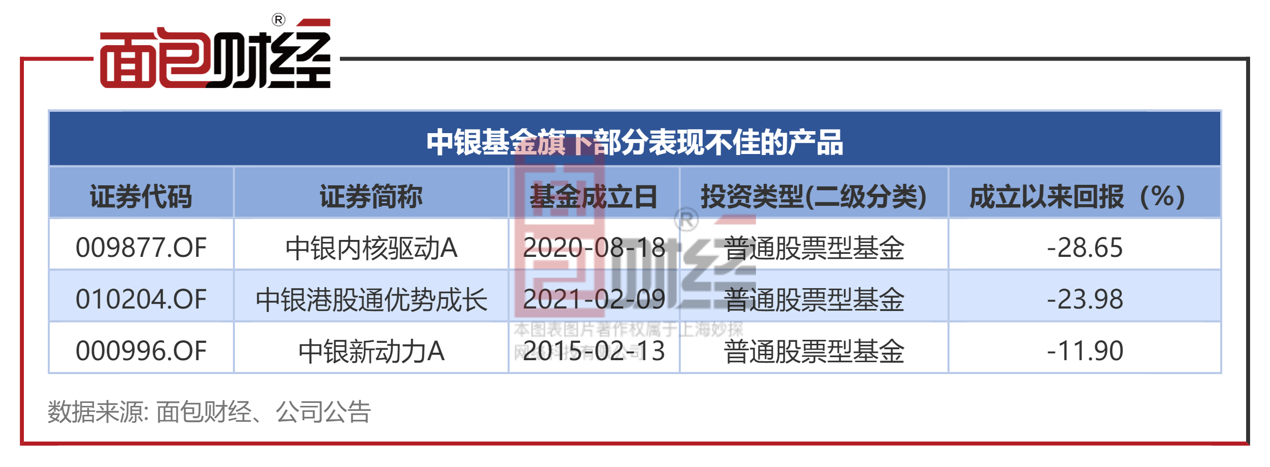 根据不完全统计,截至2025年11月14日(下同),中银基金在管的3只公募产品(初始基金口径)成立以来净值下跌超过10%。