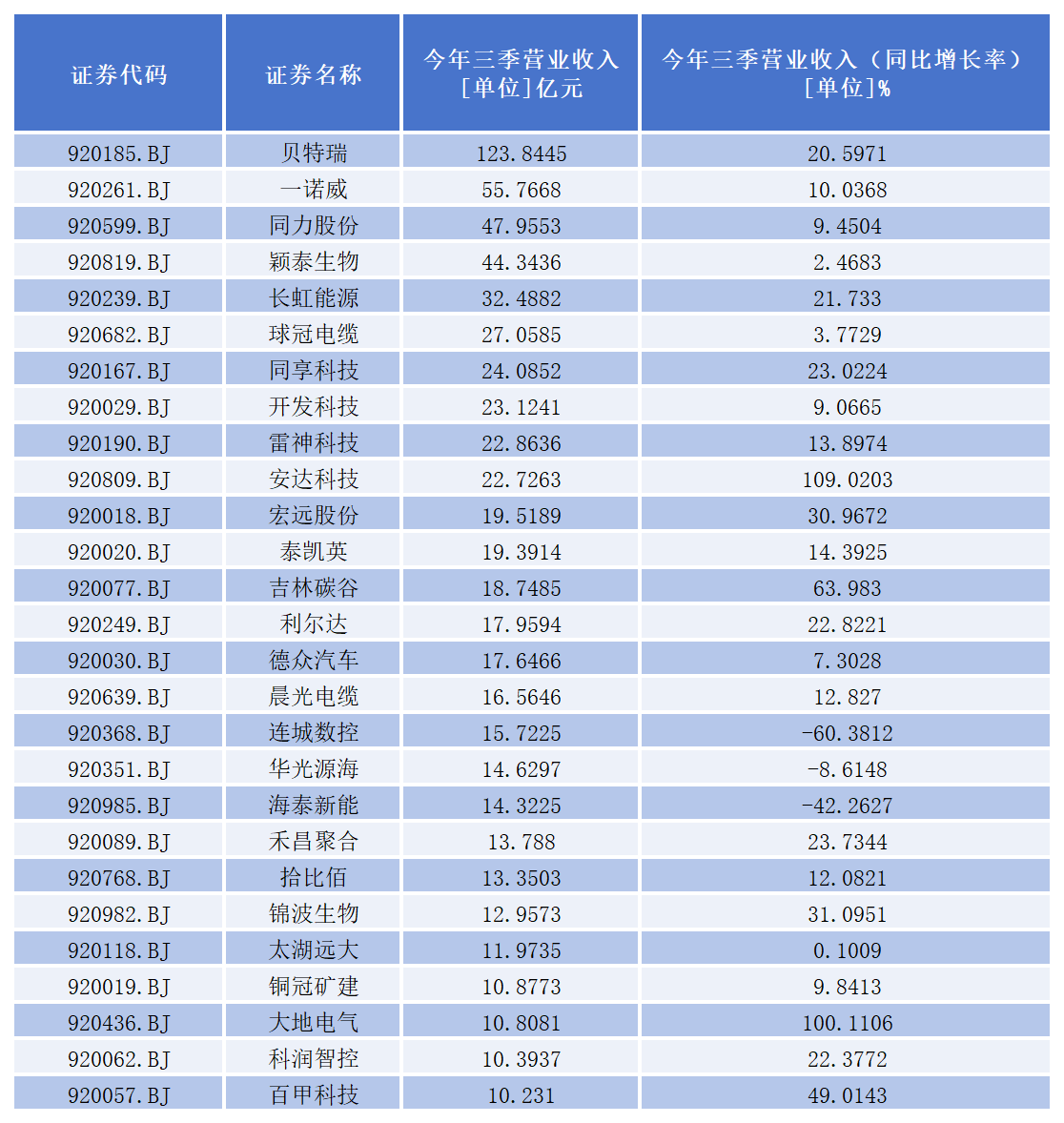 营业收入方面,排名前三的公司分别为贝特瑞(123.84亿元,同比增长20.60%)、一诺威(55.77亿元,同比增长10.04%)、同力股份(47.96亿元,同比增长9.45%)。