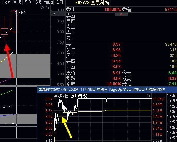 恭喜昨天9点26分更新跌幅-2%买入的603778国晟科技,今天继续涨停,昨天按照价格提前委托下单的收盘浮盈5%,今天开盘直线大涨7%后分时黄色线没有跌破,然后涨停,有部分老铁没走的,浮盈15%+,之前每次遇到次日涨停都会写文章反复说烂的方法,怕卖错自己分2批走,或是第2批看分时黄色线不跌破能涨停不走这个方法技巧说烂了。但凡卖错卖飞的记住这个方法即可,比如洗盘就心态不好的,则第一批有利润就走,这样有利润垫底后,心态好压力不大,然后第2批就可以看分时黄色线《上面截图黄色箭头指的那条黄线就是》如果涨停走隔夜获利15%+如果跌破分时黄色线利润也近12%个点,这就是大赢小损,积少成多的意义。因为这里的出入点都是没有开盘之前就9点26分更新的,肯定无法每只都预测次日100%最高点出局,学会上面这个方法,自己可以多赚多赢。
