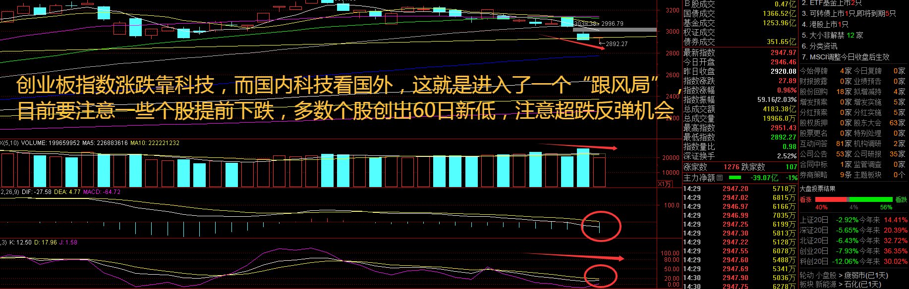创业板指数周一走势相对较强,但是下跌走势出现放量,说明场内资金开始“绷不住了”,这里要注意机构资金的动向。一方面,会议释放的战略方向进一步夯实市场对中国经济长期韧性的信心,让资本市场形成更清晰的长期价值判断逻辑。另一方面,会议通过明确未来五年的经济发展路径,让资本市场得以锚定政策确定性与产业趋势性的交汇点,引导资源向重点领域和关键环节聚集。接下来注意创业板指数能否在2930点之上稳住。
