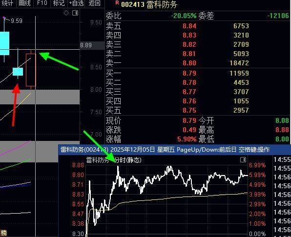 12月4号,尾盘潜伏的:雷科防务,次日止盈获利6.99%