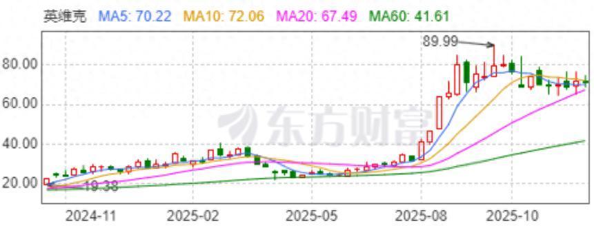二级市场同样表现亮眼。坐拥英伟达产业链公司身份,在GB300等高端AI服务器全面转向液冷的趋势下,英维克正站上最强风口,并于近期创下89.99元/股的历史最高价,年内股价成功实现**。