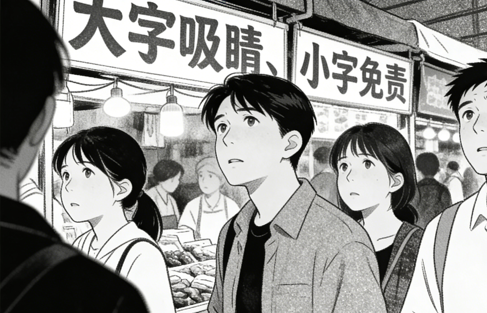 近些年,部分企业在商业宣传中惯用“大字吸睛、小字免责”的手法,通过醒目标语吸引消费者注意,却在不起眼处用细小文字设置种种限制或例外条款。此类行为看似是商家抖的“小机灵”,实则是对消费者无诚意可言的做法,从根本上动摇了诚信经营的市场基础。